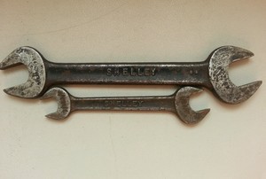 Spanners - 15 lg. asst. Spanners - 50 asst. Spanners - 25 asst. Spanners - asst. Axes, small, asst. Funnels, metal, asst. sizes Shifting spanners x 16 Pincers x12 Vintage Hand-held shearing clippers Vintage Metters wood stove - No 1, white, ready to restore. ... Return Doc