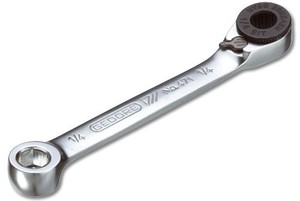 Hand tools Gedore Combination spanners Open end spanners Combination ratched spanners Double ended ring spanners Adjustable wrenches Gedore open ended spanner with ring ratchet type 7R Flat pattern, fine-toothed (72 teeth) for ratchet loosening and fast tightening. ... View Document
